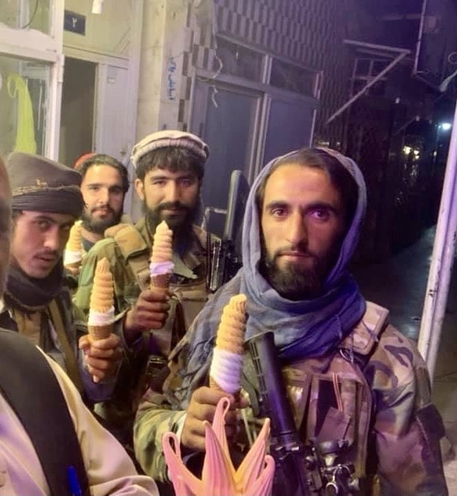 The Taliban’s entry into Kabul was not accompanied by the sound of gunfire or footage of armed struggle. Instead, we saw the Taliban command in an impromptu photo-op in the presidential palace.[1]‘Photos: Taliban Takes Control of Afghan Presidential Palace’, News, Al Jazeera, 15 August 2021, https://www.aljazeera.com/gallery/2021/8/15/in-pictures-taliban-fighters-enter-afghan-presidential-palace In the city, the fighters explored an amusement park, filming themselves on a children’s merry-go-round and riding around in bumper cars.[2]Taliban Fighters Play on Dodgem Cars at Amusement Park in Kabul, 2021, https://www.youtube.com/watch?v=BdjEwqzveos Later, they marveled at the facilities of a gym.[3]Mulhak – ملحق [@Mulhak], ‘عناصر “#طالبان” يمارسون الرياضة في قاعة جيم بالقصر الرئاسي في #كابل’, Tweet, Twitter, 16 August 2021, … see more Some ate ice-cream.[4]Abdulhaq Omeri, ‘#Taliban Eat Ice-Cream #Kabul #Afghanistan.’, Tweet, Twitter, 17 August 2021, https://twitter.com/AbdulhaqOmeri/status/1427715238464561154 More LARP (Live Action Role Play) than war.