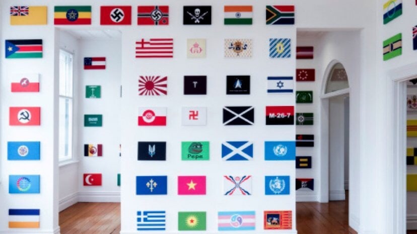 Benjamin does not imply that the art practices of the right are aesthetically superior, but he does draw a veil over the political effectiveness of the right’s aesthetics. The long-term result is that a growing plethora of symbols, subjects, and styles, from the Celtic cross to Pepe, are assumed to be aesthetically efficacious because of the politics that they support, rather than because they make for ‘good’ visuals. Consider, for example, the outrage over the 2020 exhibition People of Colour in an Auckland project space, which attracted accusations of hate speech because it displayed the flags of a variety of right-wing political organizations (including the Polish far right and the SS), alongside those of politically acceptable actors (New Zealand’s United Tribes and, bizarrely, South Korea). On the wall, the exhibition looked like a grid of 3D meme chess brought to life to invite scrutiny and consideration. Yet it received neither: the curators were accused of harboring fascist views and forced to apologize.[26]Amal Samaha, ‘Swastikas off K Road: How the Worst Art Show in New Zealand Came to Be’, The Spinoff, 12 November 2020, https://thespinoff.co.nz/society/12-11-2020/swastikas-off-k-road-how-the-worst-art-show-in-new-zealand-came-to-be